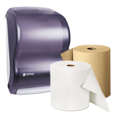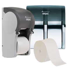 Restroom paper supplies from Georgia Pacific, Kimberly Clark, Kleenex, Hospeco, Windsoft, Scott & Boardwalk.