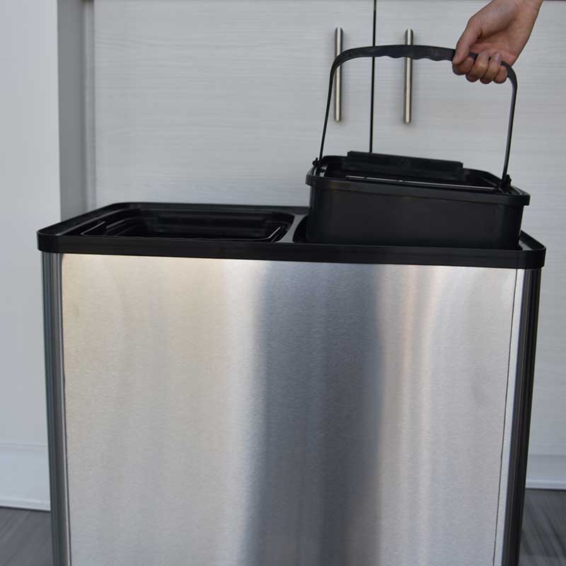 - 2 inner buckets for trash and recyclables