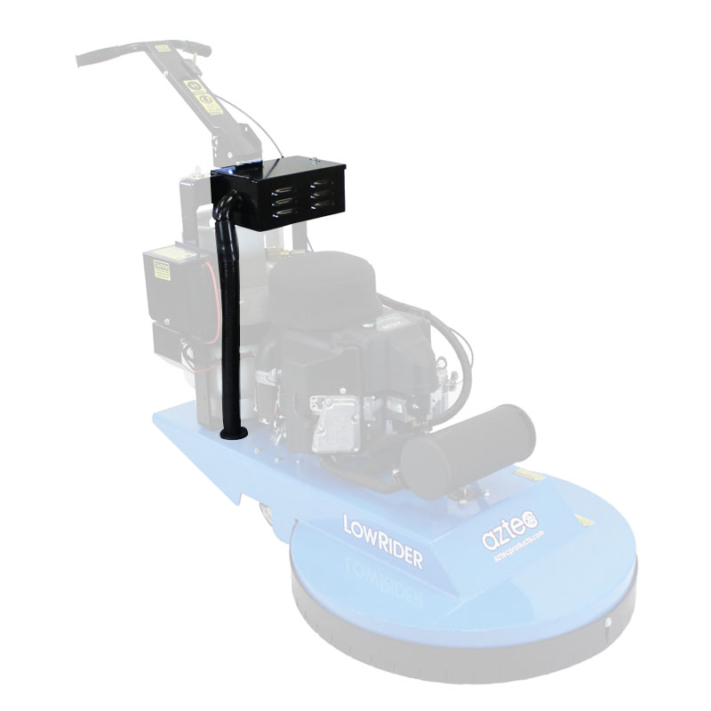 The LowRider Dust Control Kit is used for VCT and polished concrete floors. The dust control feature was developed as part of Aztec’s commitment to green cleaning, and the patented vacuum system improved indoor air quality by containing air particles. The Dust control feature also includes an adjustable pad pressure, and an easy change floating dust skirt.
