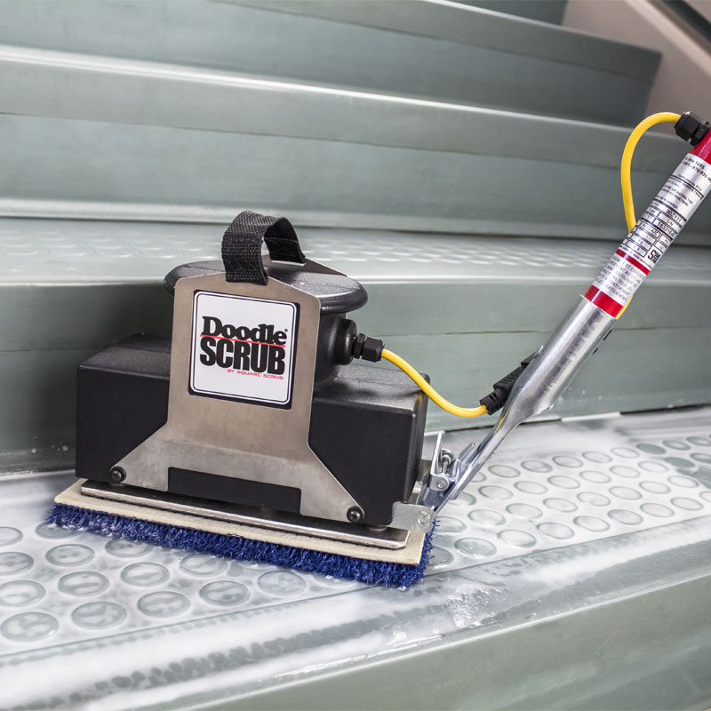 Made in the USA, the Doodle Scrub is designed specifically for those out-of-reach areas that the bigger floor machines cannot reach. The new patent pending EBG-9 handle innovation allows you not just one but two ways to attach the handle to the base, providing its user maximum versatility.