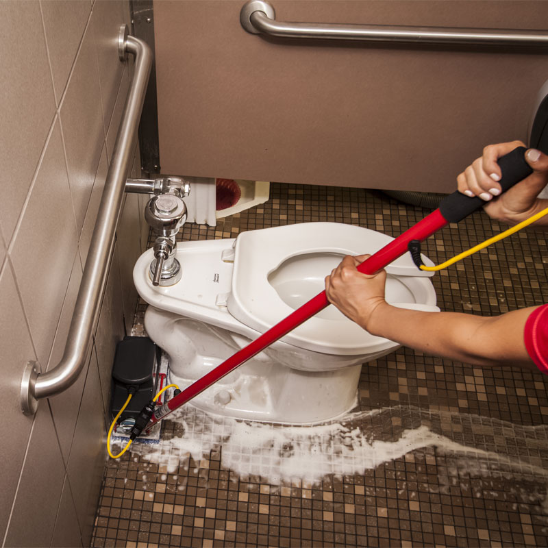 Reach behind toilets and urinals for a deep cleaning with Square Scrub's EBG-9 Doodle Scrub! The Doodle Scrub is the most compact machine from Square Scrub. Compact and powerful, the Doodle Scrub delivers nearly the same pounds per square inch as the EBG-20/C at just 22 pounds.