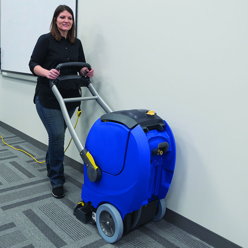 The EX40 CRI certified cleaning machine is proven to effectively remove soil from carpeted surfaces, improving indoor air quality and extending the life of your carpets. Clarke self-contained extractor is compact, extremely versatile and easy to operate for any cleaning professional. With the One-Touch control feature, cleaning carpets is as simple as switching on and selecting your cleaning mode.