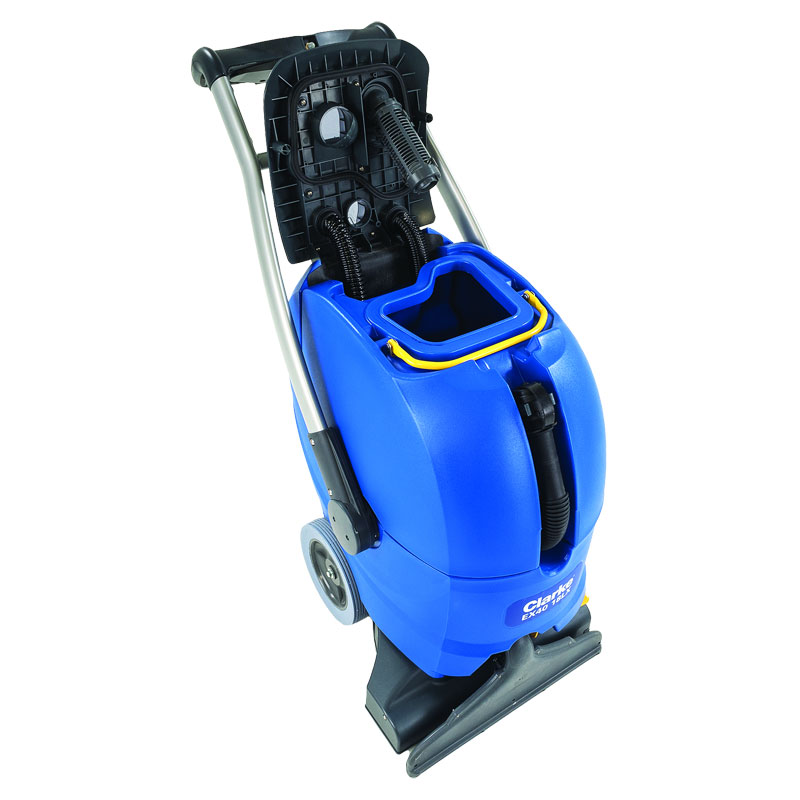 The Clarke EX40 self-contained extractor provides quick, efficient carpet cleaning. A new, larger tank means fewer refills and longer cleaning time, while the unique handle design provides enhanced maneuverability and ergonomics.