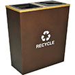 The Metro Collection Recycling Receptacle is made of fire-safe steel, and its durable construction creates an aesthetically pleasing and functional recycling receptacle suitable for your home's decor. The RC-MTR-1 HCPR includes a set of three interchangeable steel tops and beveled flat tops for trash, paper, and cans and bottles. It is ADA compliant, has rigid plastic liners with ample 18-gallon capacity in each liner, and is slightly elevated to allow for air circulation and help restrict unsightly discoloration of floor surfaces from "mop around" rings.
