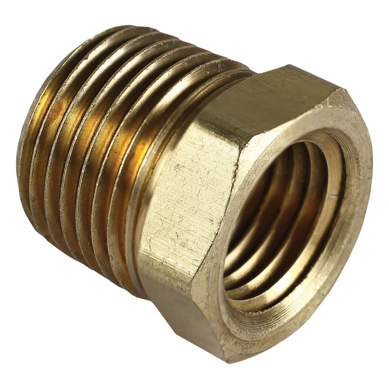 Reduces 3/8" Male to 1/4" Female connectors so that rental gun can be used on all stocked pressure washer units.