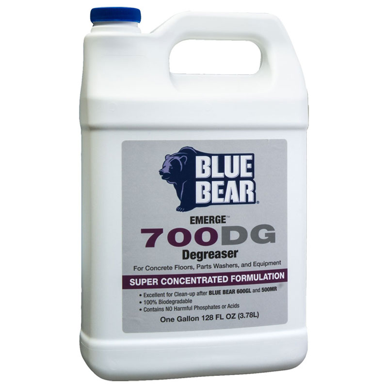 Formerly known as Emerge Degreaser. The 700DG Emerge is an all purpose cleaner with a label that says it all - all you need for all you clean. The Blue Bear 700DG is a versatile, super concentrated cleaner for cleaning a multitude of hard surfaces for the dirtiest, toughest, and grimiest of projects.