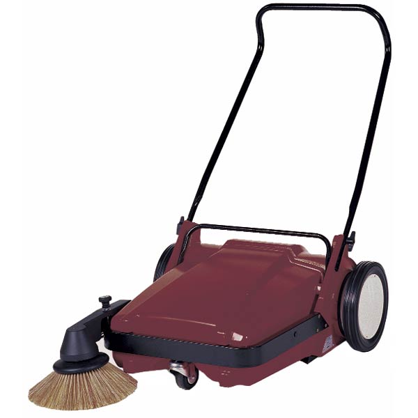 The KS27R is an ideal alternative to manual sweeping. Lightweight and easy to operate, the KS27R picks up dirt off the floor quickly without leaving dust behind. Its compact design fits through any standard door and can be used inside and outside. Main broom and side brush can be adjusted for optimum adaptation to floor conditions and types of dirt, making this 26" floor sweeper great for cleaning workshops, outdoor areas, sidewalks, and parks.