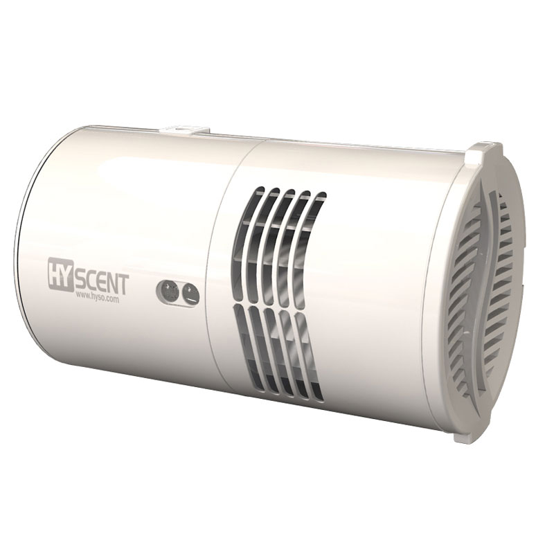 An innovative centrifugal fan system for eleminating malodors in small areas. Compact, sleek and very effective, the HYscent Solor air freshener dispenser brings the highest quality fragrancing to small room areas. The Solo is extremely versatile, offering unlimited option for use, whether wall mounted or free standing.