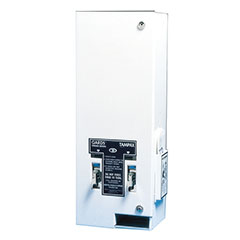 Unset (currency-free), coin-style vendor dispenses both No. 4-size pads and tampons. Two-toned all-metal case provides attractive durability. Restock lock helps prevent tampering. Included instructions and wall-mount hardware ensure easy installation.