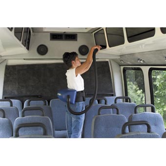 The Hip Vac rests comfortably on the hips of the operator. Thanks to its small compact design, operators of all sizes have complete freedom of movement for all types of cleaning tasks. The motor is positioned to correspond to the body’s own center of gravity, enhancing balance and minimizing fatigue.