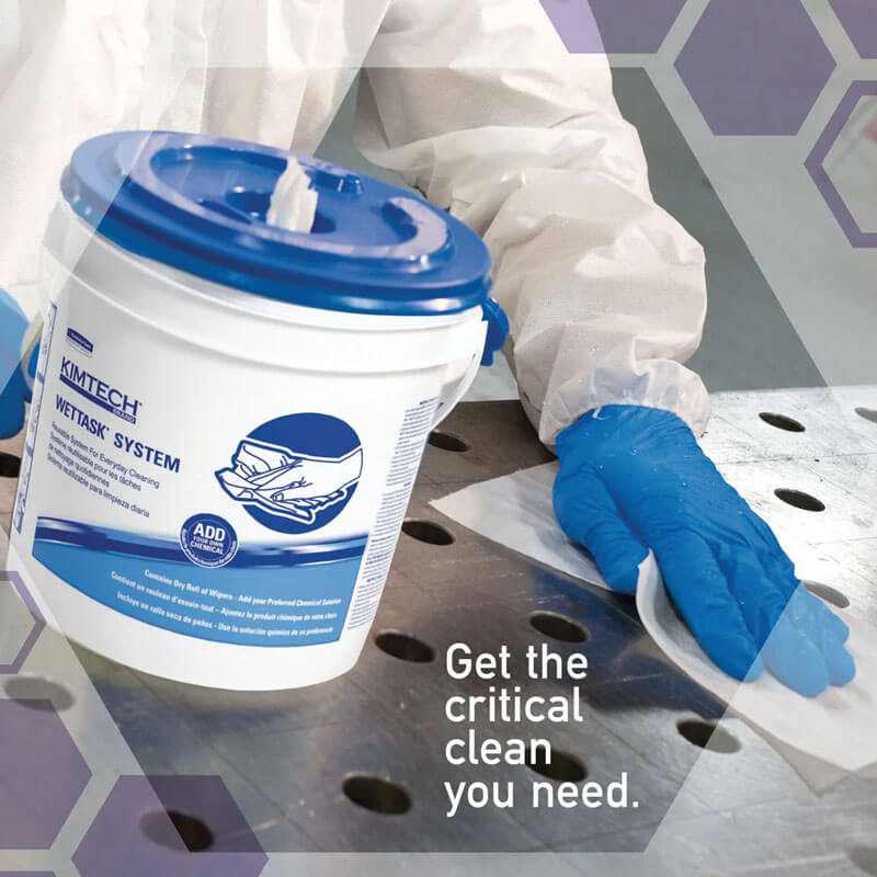 An ideal alternative to using a spray bottle or open bucket with rag. Wipers are specifically designed to be compatible with quat disinfectants and sanitizers. They maintain the target disinfectant concentration and provide a more uniform application than is possible with a cotton rag. Simply add a roll of wipers and your own chemical solution to the WETTASK* disposable bucket with secure lid. Wipers dispense one at a time, preventing cross-contamination of the cleaning solution while reducing exposure to chemical vapors and splashes. Buckets can be prepared ahead of time and are easily transported, allowing you to spot clean germ zones several times a day.