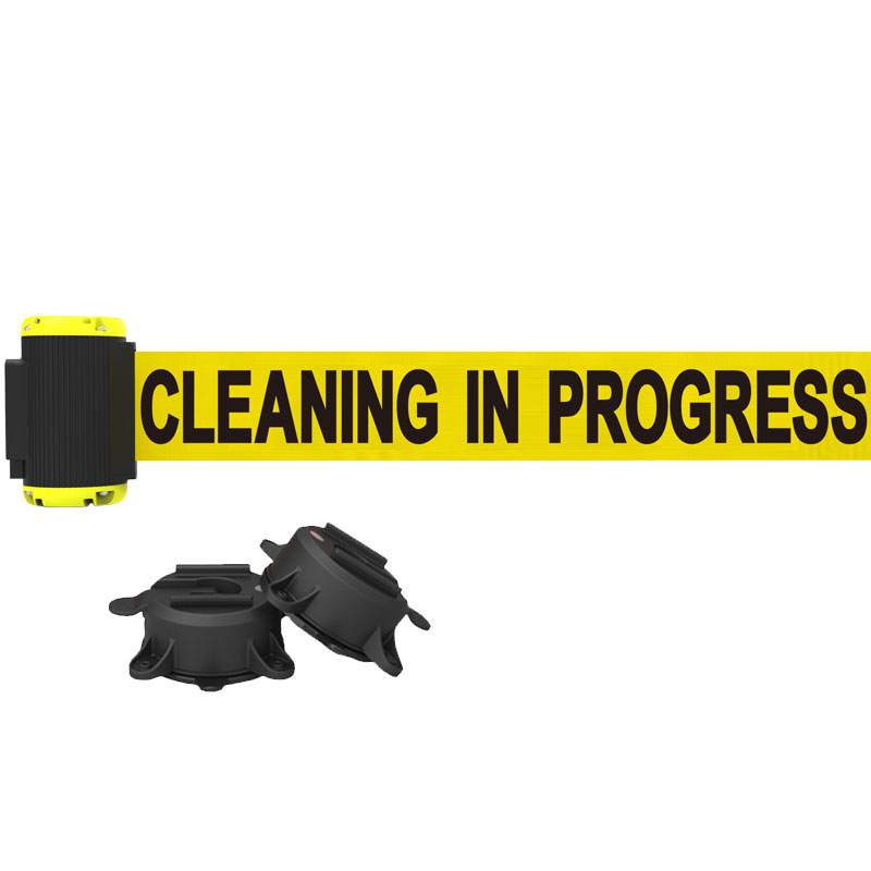 Cleaning In Progress Banner, Yellow - 7' Magnetic Wall Mount