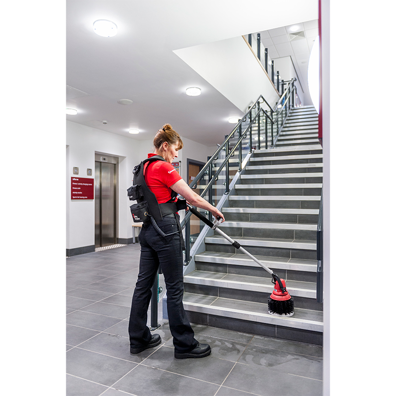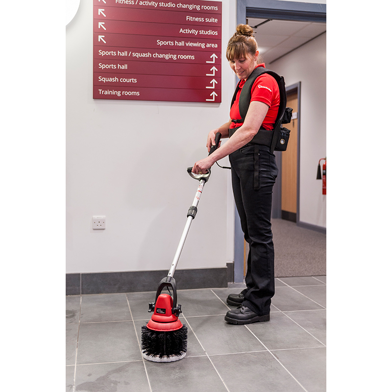 The short handle Motor Scrubber is a powerful lightweight handy versatile scrubber used for several applications. The MotorScrubber is a 12-Volt battery powered cleaning machine for reliable, safe use on your boat, RV, Business or any hard to reach cleaning tasks. A Battery-Packin', dirt-zappin', cleanin' machine!