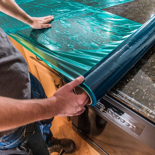 Multi Surface Protection Film is a durable, self-adhering protective film for hard surfaces, such as tile, marble, granite, vinyl, VCT, laminates and factory finished hardwood. It's not only great for floor protection but it can be used to prevent damage to most counter tops, tubs, sinks, doors & more! Ideal for remodeling, painting, moving, model home tours and parties, it is a true multipurpose product!