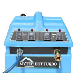 Mytee Hot Turbo is a 2400 watt portable heater that can be hooked up to any cold water extractor for instant heat. Switches allow you to select either 600, 1200, 1800, or 2400 watts of heat for 210 degree maximum heat.