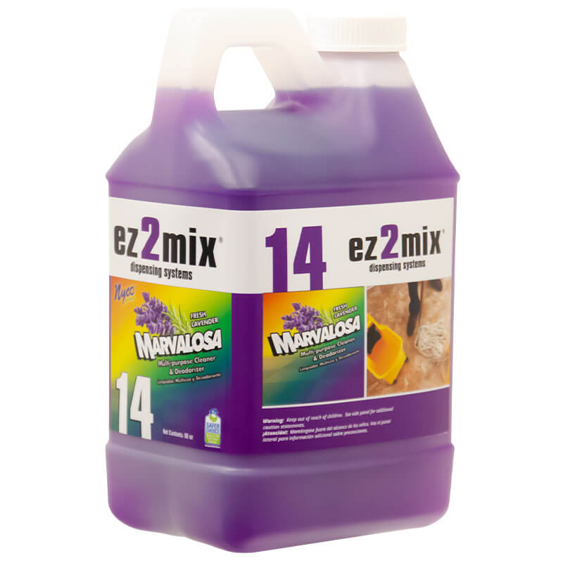 The Multi-Purpose Cleaner & Deodorizer is a professional strength cleaner with a Lavender Fresh fragrance. Clean and deodorize in a single, time-saving step. Use ez2mix MARVALOSA to clean and deodorize a variety of surfaces including floors, walls, countertops, woodwork, or any surface that is water-safe.