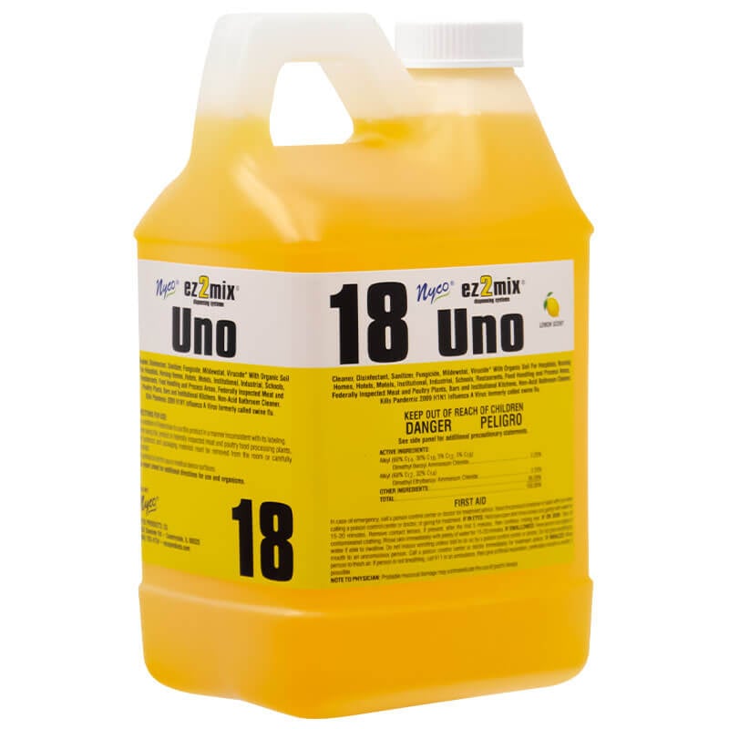 The ez2mix Uno Deodorizer, Disinfectant, Fungicide, Mildew stat, and Viricide Cleaner is great for cleaning Hospitals, Nursing Homes, Hotels, Motels, Institutions, Industries, Schools, Restaurants, Food Handling and Process Areas, Federally Inspected Meat and Poultry Plants, Bar and Institutional Kitchens. Non-Acid Bathroom Cleaner.