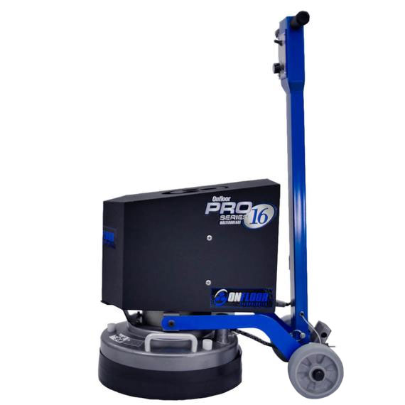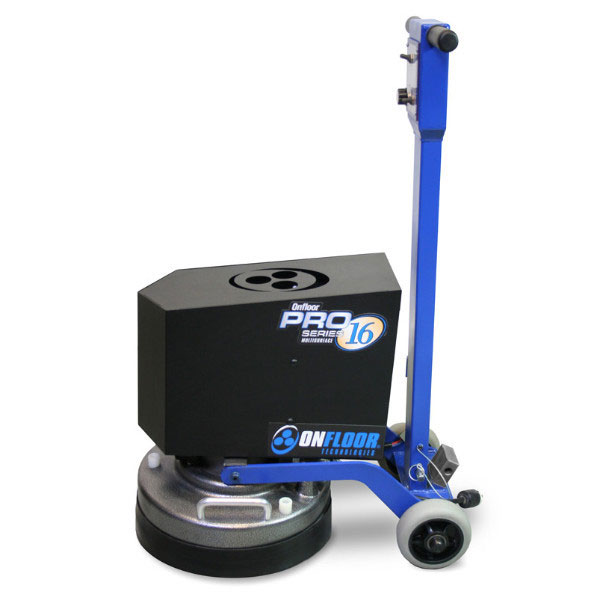 The Onfloor OF16Pro is a multi-surface planetary machine equipped with Onfloor’s patented triple-belt technology. The platform quickly transforms to become a Concrete Floor Grinder, a Concrete and Stone Floor Polisher, a Wood Floor Sander and a Wood Deck Resurfacer in seconds by changing the tooling.