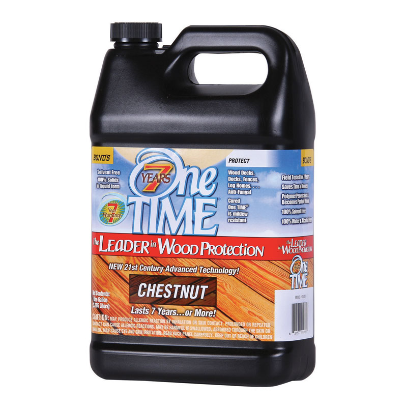 As a result, One TIME® does NOT require reapplication for 7 full years, eliminating the annual ritual of recoating the wood. We guarantee it. One TIME® can be used on virtually any exterior wood: new or old wood, pressured treated or natural wood, cedar, pine,or any other wood type. It is suitable for any exterior wood application: decks, docks, log homes, siding, outdoor furniture, fences, bleachers, shake roofs, boardwalks, outdoor furniture, etc.