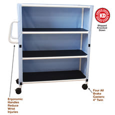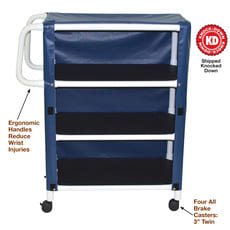 PVC Plastic Frame Linen Carts are a cost effective alternative to our Metal Frame Linen Carts providing the same strength and ease of transport of linens, clothing and towels in your facility. Extensively tested, reinforced at stress points and healthcare grade PVC Pipe and fittings make these linen carts a sufficent solution to your logistics needs.