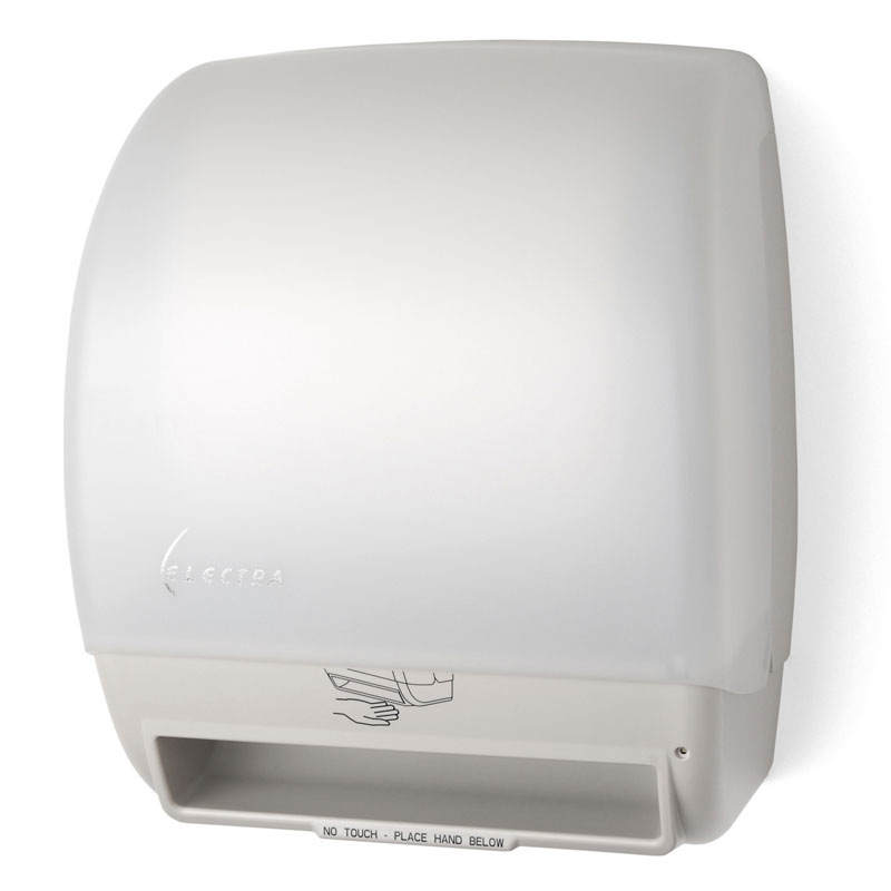 The Electronic Hands-Free Roll Towel Dispenser provides maximum options and cost reduction. Features adjustable paper lengths of 9 in, 12 in, and 15 in. and time delays of 1, 2, or 3 seconds. This patented paper-savings mode reduces paper towel consumption by 12 to 15 percent. With an automatic transfer system, this electronic paper towel dispenser eliminates stub roll waste.