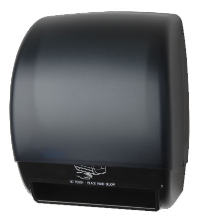 The Electronic Hands-Free Roll Towel Dispenser provides maximum options and cost reduction. Features adjustable paper lengths of 9 in, 12 in, and 15 in. and time delays of 1, 2, or 3 seconds. This patented paper-savings mode reduces paper towel consumption by 12 to 15 percent. With an automatic transfer system, this electronic paper towel dispenser eliminates stub roll waste.