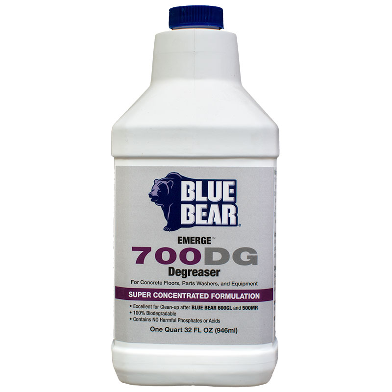 Formerly known as Emerge Degreaser. The 700DG Emerge is an all purpose cleaner with a label that says it all - all you need for all you clean. The Blue Bear 700DG is a versatile, super concentrated cleaner for cleaning a multitude of hard surfaces for the dirtiest, toughest, and grimiest of projects.