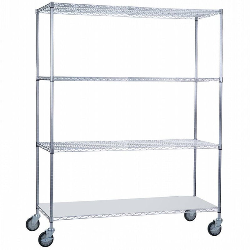 - Three sturdy 24" x 60" wire shelves and one solid bottom shelf with a powder coated finish