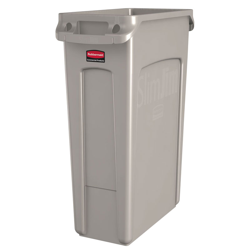 Slim Jim Rectangular Waste Container w/ Venting Channels - 23 Gallon - Beige