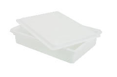 High-quality, stain- and break- resistant construction ensures secure storage. Convenient date-control panel simplifies monitoring foodstuffs' edibility. Standard sizing enables use with existing storage racks, carts, counters, etc. Freezer- and dishwasher-safe.