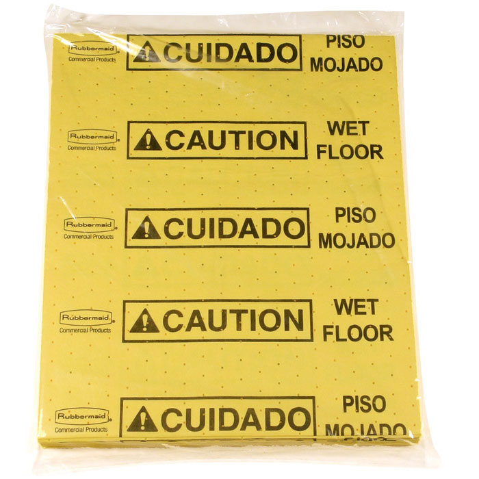 Prevent accidents immediately after a liquid spill on a smooth floor surface "CAUTION-WET FLOOR" imprint and instructions in English and Spanish Bright yellow, durable corrugated plastic dispenser Mildew-resistant.