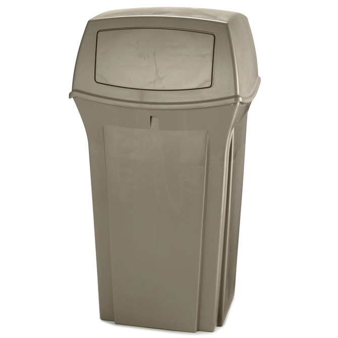 Durable structural foam construction designed for outdoor use. Withstands extreme weather. Permanently attached hinged lid. Metal retainers keep can liners securely in place and out of sight.