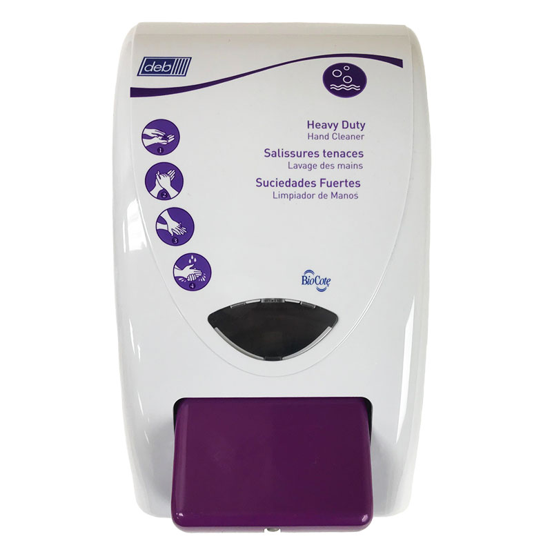 This heavy-duty soap dispenser is used with all SC Johnson Professional industrial hand cleaners packaged in a 2 liter container. This soap dispenser can also be used with any other SC Johnson Professional 2 liter cartridge soaps.