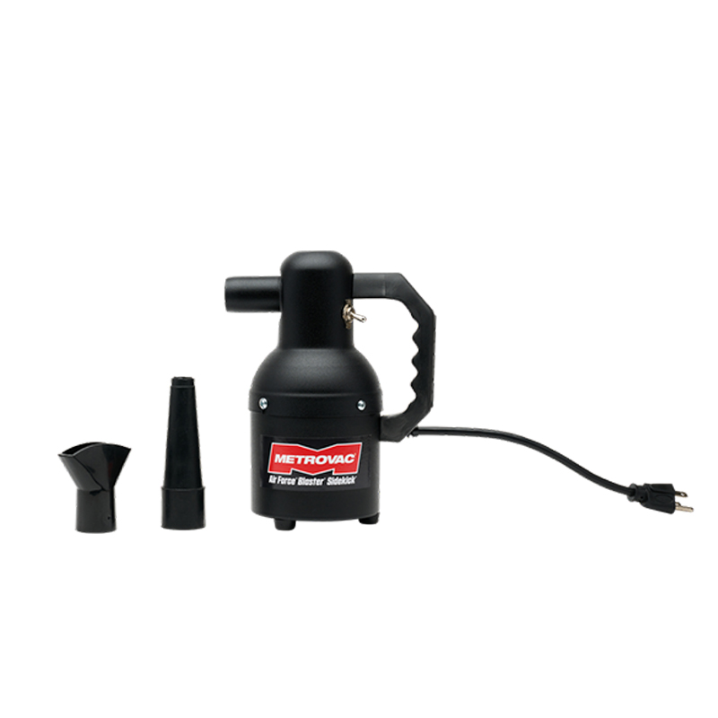 The all-steel construction of the Air Force Blaster Sidekick has a durable build weighing just over three pounds. Features a singel-stage fan that can move 18,000 feet of air per minute. Includes a 12 inch heavy-duty power cord, durable neoprene nozzle and air flare, as well as an EZ change foam filter.