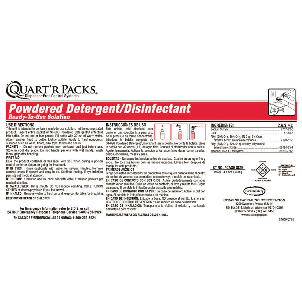 Stearns Quart'r Packs ST-690 Powdered Det/Dis - Label Only