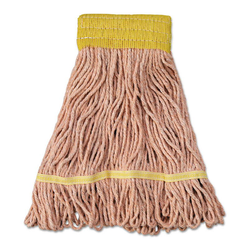 For high-volume usage. Blend of premium four-ply cotton/synthetic yarn covers more floor area by absorbing up to seven times its own weight. Looped ends reduce unraveling and linting. Durable double-sewn tailbands. Heavy-duty, 5" vinyl mesh headbands. Launderable in a mesh bag. Use with clamp or gripper style mop handles (sold separately). 12 mop heads per case.