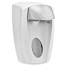Wall mounted liquid soap dispensers commonly used in public bathrooms and commercial buildings. See each dispenser for available soaps and refills.