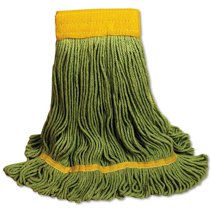 Four-ply mop head with engineered fibers made entirely from recycled material. Absorbs more than four times its weight in water. Looped ends reduce unraveling, fraying and lint.