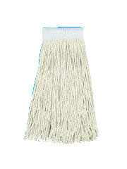 Standard four-ply natural yarn cut-end mop head. Heavy-duty, five-inch vinyl mesh headband securely holds full-weight premium fiber strands. Great for scrubbing. Use with clamp or gripper style mop handle (sold separately).