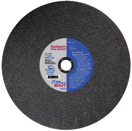 United Abrasives Saitech Steel Worker Type 1 Chop Saw Wheel measuring 16in X 3/32in X 1in is formulated with 3M cubitron grain for consistent high stock removal for tough applications. It is externally reinforced with the highest quality fiberglass to withstand the toughest
