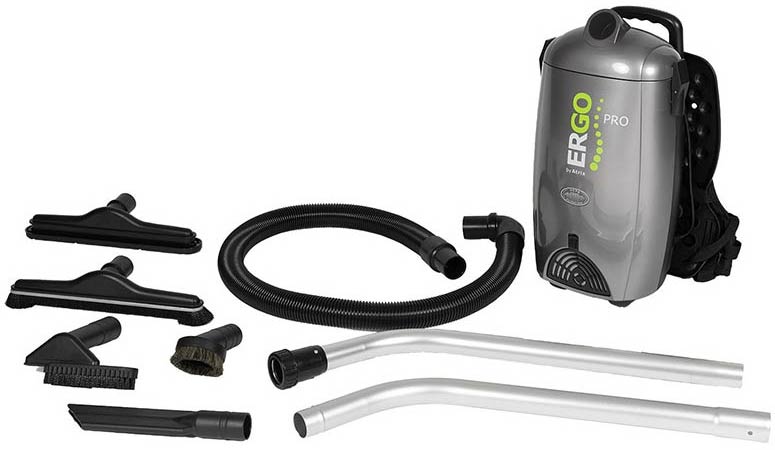The Atrix ERGO PRO Backpack Vacuum VACBPAI is an excellent vacuum for janitorial/sanitation, contract cleaning, offices, warehouses, stairs, ceilings, entryways, ledges, and lobby furniture. The VACBPAI has four levels of filtration which consists of an eight quart HEPA bag, cloth shake out bag, HEPA premotor filter, and an exhaust filter.