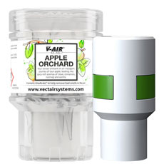 The Vectair Refill Cartridges for the V-Air Solid Air Freshener are HFC-, propellant-, and solvent-free, VOC-exempt solutions that deliver continuous fragrance for up to 60 days. There are a variety of scents available, including apple orchard, citrus mango, lavender and geranium, cool mint, cucumber melon, ocean spray, and linen breeze.