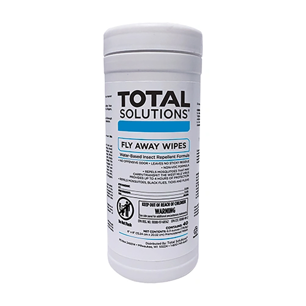 Fly Away Wipes provide up to 4 hours of protection from mosquitoes, black flies, stable flies, sand flies, gnats, chiggers, fleas, and ticks. These convenient, easy to use wipes allow for quick and thorough application to skin, hair, and clothing to ensure maximum protection. Water-based formula with 25% DEET.