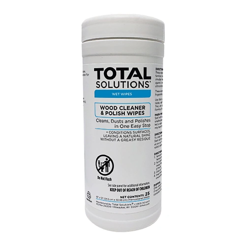Wood Cleaner & Polish Wipes cleans, dusts and polishes wood surfaces in one easy step. Our powerful cleaning formula is premoistened on lint-free towels and will not leave behind a wax build-up or an oily residue.