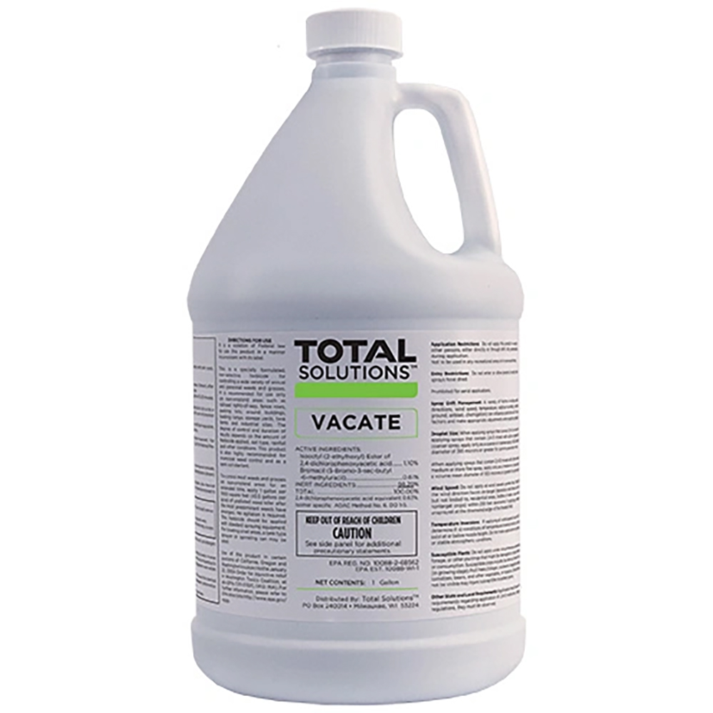 Vacate is a powerful VOC-compliant, ready-to-use, non-selective total-kill herbicide with residual. It contains 1.10% 2,4-D and .61% Bromacil for fast knockdown and long lasting residual up to 12 months.