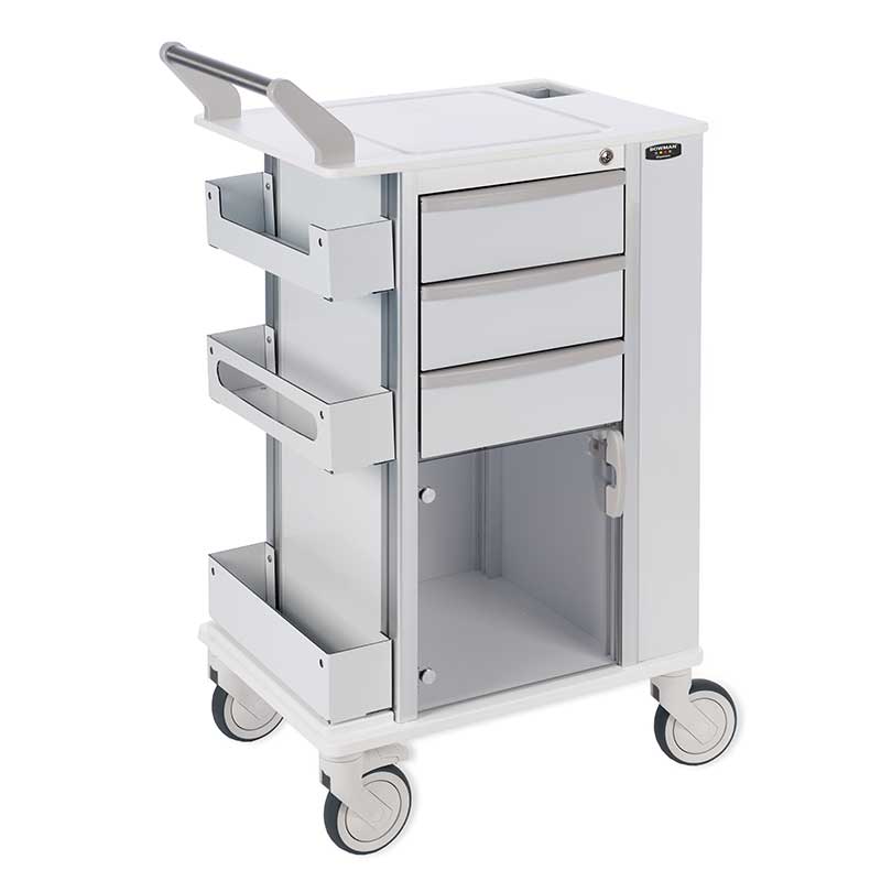 - All drawers are locked and unlocked with one key, side bins tilt for quick and easy access