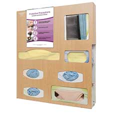 - Holds gowns, aprons, or coveralls/jumpsuits, three boxes of gloves, one box of ear loop masks, and one box of shield masks