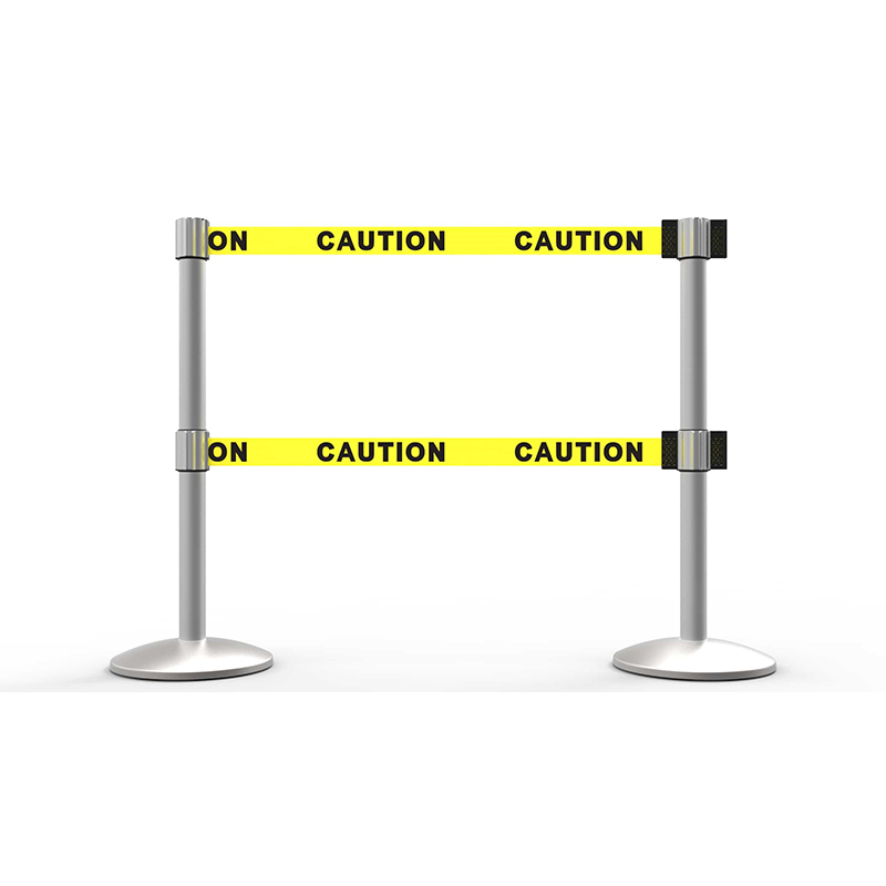 QLine Retractable Dual Belt Barrier X2, Matte Post, Yellow "Caution"