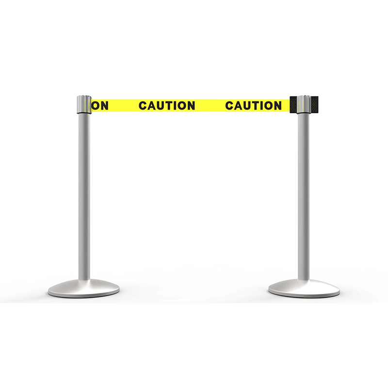 QLine Retractable Belt Barrier X2, Matte Post, Yellow "Caution"