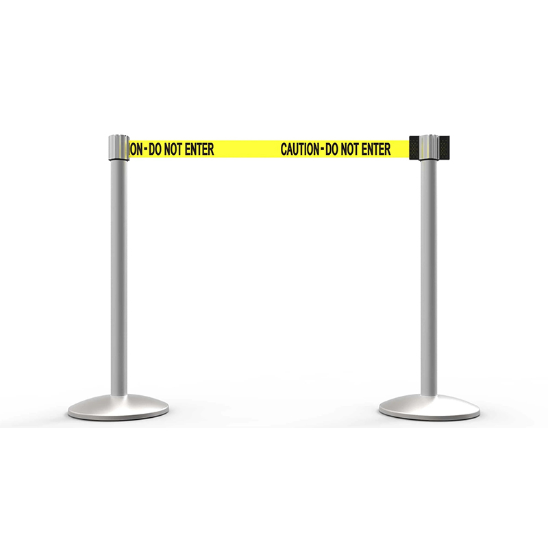 QLine Retractable Belt Barrier Set, Matte Post, Yellow "Caution - Do Not Enter"